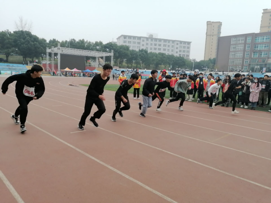 在本次运动会上,四院的运动员们在100米、200米、400米、800米、1500米,三级跳、跳高和跳远等项目上展开角逐。虽然天气寒冷,但丝毫没有影响各院学子加油的热情和运动员的比赛激情。比赛开始后,操场顿时沸腾起来,加油声,欢呼声充满了整个校园,主席台上主持人不断播放着各院学子给运动员送来的祝福,为运动员们助威加油。径赛场上的运动员们,一个个如矫兔般飞离起点,像利箭般冲向终点;其他项目的比拼,同样精彩,三级跳,跳高和跳远的运动员们也毫不示弱,为了得到更好的成绩,拼尽全力,面对目标跨出坚定的步伐,跳了一次又一次,突破自我。
