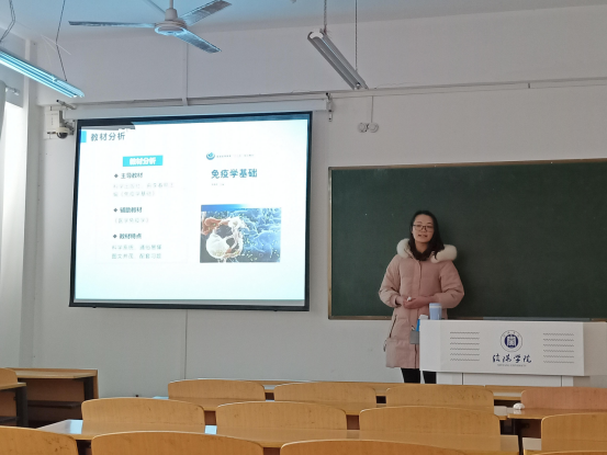 教学秘书赵丹在主持竞赛时,简要说明了本次竞赛的基本情况、评分标准和竞赛规则,比赛分三组进行,选出每组前三名参加学院决赛。本次比赛,参赛教师精心制作的多媒体课件内容丰富多彩,图文并茂,有些还加入小视频,授课内容充实,设计合理,自然融入课程思政元素,起到了育人目的。绝大多数教师都结合“雨课堂”等信息化教学手段进行课程教学,效果良好。例如,第一组的任倩老师,使用案例教学法,用丰富的事例介绍了汽车营销的知识。第二组的魏新玲老师,通过一个中国地图引发的事件,引出中国的领土和疆域“一点儿也不能少”。第三组的臧明丽老师,用丰富的图片和动图,生动风趣的语言介绍了物种隔离的理论。本次竞赛有九位优秀青年教师脱颖而出,他们将继续参加学院教学技能竞赛的决赛。