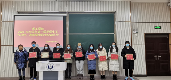 理工学院为总结学生工作和明确考风考纪,12月29日晚上,理工学院在实训中心103教室举办了2020-2021学年学生工作总结、表彰暨考风考纪动员会。理工学院教学副院长李晓严、学生秘书杨晓杰、团总支书记黄艳伟,辅导员甘玉锋、徐国文、郑亚茹,第十四届团总支、学生会全体成员,各班班委和学生代表参加会议。本次会议由黄艳伟主持。