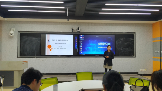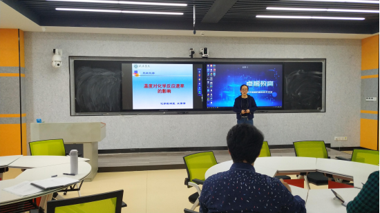 首先,王倩倩老师和刘仁植老师分别进行了讲课。王倩倩老师讲授的是《温度对化学反应速率的影响》,刘仁植老师讲授的是《电解与极化作用—金属的防腐》。两位老师内容设计完整,授课过程中融入思政元素。