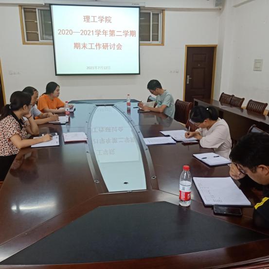 7月12日下午,理工学院在理工楼201会议室召开2020—2021学院第二学期期末工作研讨会。理工学院院长肖生发、党总支副书记张红梅、教学副院长李晓严以及全体班子成员参加会议。