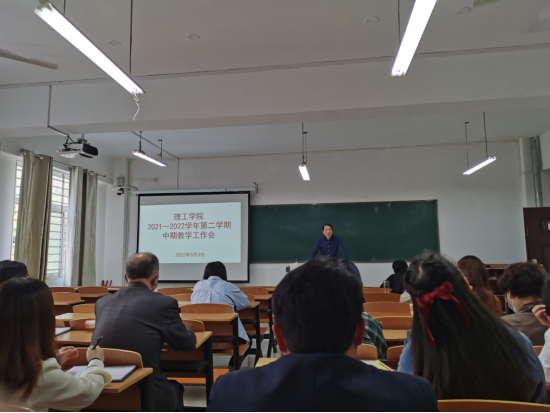 5月3日下午,理工学院在理工楼302教室召开2021-2022学年第二学期中期教学工作会议,院长肖生发、教学副院长李晓严以及全体教师参加本次会议,会议由行政干事樊瑞主持。