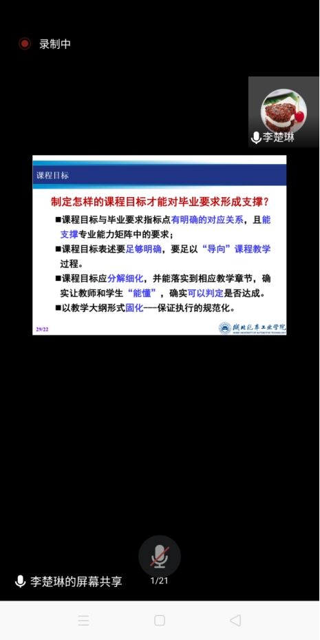 7月14日下午15:00-17:00,理工学院邀请湖北汽车工业学院副教授李楚琳在线上做了题为“基于OBE理念的人才培养方案制定与课程教学改革”的培训,我院全体教师参加了本次培训,会议由教学副院长李晓严主持。