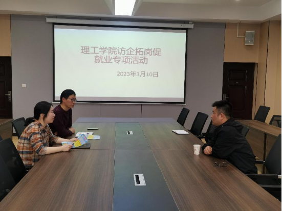 为贯彻落实学校关于推进就业工作的会议精神,3月10日下午,理工学院副院长李晓严、学工秘书杨晓杰与开封希望中学专职招聘教师吕老师在理工楼201会议室深入会谈,开展访企拓岗活动。