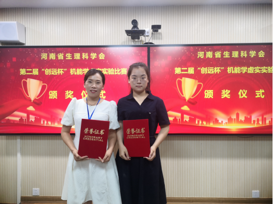在随后举行的虚实结合教学竞赛上,来自省内多所高校的17位教师参加竞赛角逐。高进勇、余倩云老师代表信阳学院参加了机能学虚实实验比赛,在众多的机能学参赛选手中,高老师、余老师沉着冷静,操作熟练,分别获得了二等奖和三等奖。两位教师表示,要把此次竞赛作为机能实验教学技能交流的桥梁,树立机能实验教学的先进理念,深化教学改革,提高机能实验教学的教学质量与教学水平。