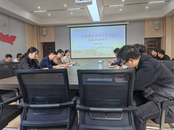 本次活动的主讲教师是大学物理教研室的段君杰老师,主要针对不同专业学生的情况和新高考改革的变化,从课程设置改革、教学方式改革和考核方式改革做了详细的分析和汇报,并与大家交流了针对这些问题的优化策略和改革方法。