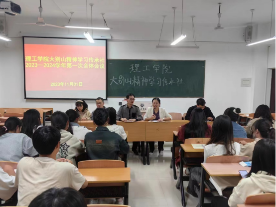 为确保大别山精神学习传承社后续工作顺利开展,让2023级新生对大别山精神学习工作有更清晰的认识,11月1日晚,理工学院大别山精神学习传承社在理工楼608自习室召开2023年下半年第一次全体会议。党总支副书记张红梅、大别山学习传承社副社长杨晓杰、黄艳伟、甘玉锋出席会议,全体辅导员及2023级、2022级大别山精神学习传承社联络员、社员参加了会议。