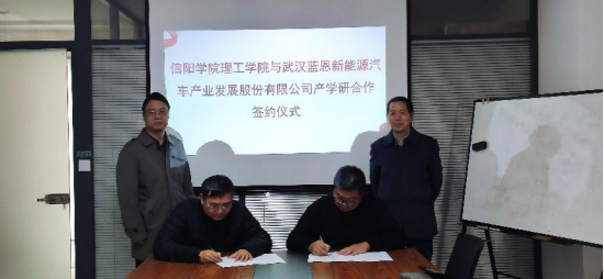 蔡宏银总经理表示,非常高兴与信阳学院理工学院建立产学研合作关系,这将为蓝恩新能源汽车产业发展股份有限公司提供强大的科研支持,更好地解决新能源产业发展中的难题;相信通过双方的共同努力,共同打造出一个科技型品牌企业。