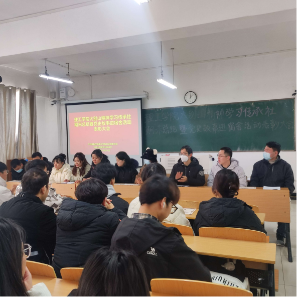 12月22日上午,理工学院大别山精神学习传承社在理工楼302教室隆重举行“党史故事进宿舍活动”颁奖仪式。全体辅导员、大别山学习传承社全体社员及各班获奖学生代表参加了会议,会议由大别山学习传承社副社长甘玉锋主持。
