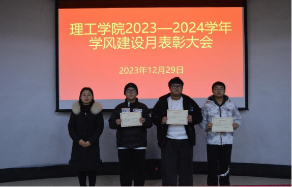 为了表彰在学风建设月表现突出的优秀学生和班级,进一步激发理工学子的学习热情和积极性,巩固理工学院学风建设的成果。2023年12月29日下午,理工学院在理工楼116教室召开2023-2024学年学风建设月表彰大会。理工学院党总支副书记张红梅、学工秘书杨晓杰、全体辅导员、学生干部代表及获奖学生代表参加了本次会议。会议由杨晓杰主持。