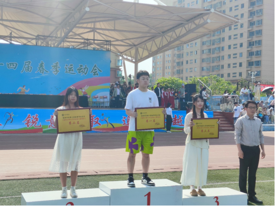 在学生组的比赛中,理工学院的同学不甘示弱,拼尽全力,其中师玉格代表理工学院在女子1500m、800m两个项目中,一骑绝尘,荣获两个学生女子组第一名,其中1500m更是打破校内记录;陈超荣获学生男子组三级跳远第一名、学生男子组跳高第二名、男子组跳远第二名;李克强荣获学生男子组铅球第二名。在团体赛中,学生男子组拔河理工学院荣获第三名;学生男子组托球接力障碍跑理工学院荣获第二名;学生女子组托球接力障碍跑理工学院荣获第一名。