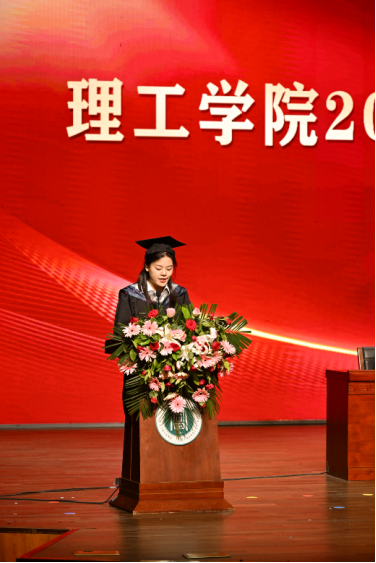 2023级生物科学本科1班张钺同学向全体毕业生朗读了《理工学院毕业寄语》。