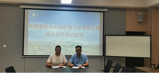 6月16日,理工楼201会议室,理工学院与河南萨德汽车有限公司正式签订了校企合作协议,企业代表易善鹏经理和理工学院汽车工程教研室主任王思满以及教师代表参加了此次签约仪式。