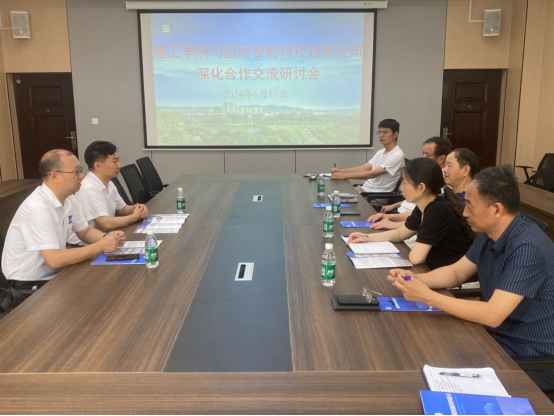 为进一步深化产、学、研合作,培养应用型专业人才,建设博士后工作站。6月17日,理工学院在理工楼201召开与信阳星原智能科技有限公司合作交流研讨会。信阳星原智能科技有限公司总经理任卫民、副总经理杨勇,理工学院院长肖生发、物理教研室主任董玉静、机电教研室主任曹国廷、学科带头人王仲初教授、张秋平教授等老师参加了会议;肖生发主持了会议。