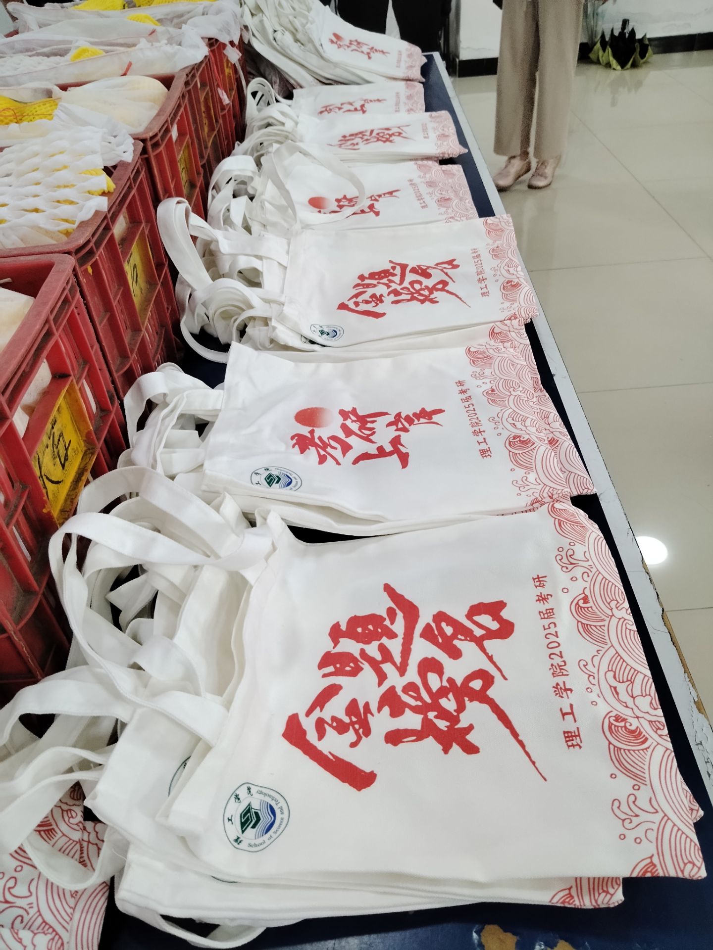 慰问过程中,学院领导老师为同学们送上精心准备的“理工学院考研上岸福袋”装满了考研心理疏导秘笈、考研复习计划宣传单、笔记本、桃子等慰问品,希望同学们能熬过炎炎夏日,沉着冷静备考,“桃”得彩头,一战成硕。