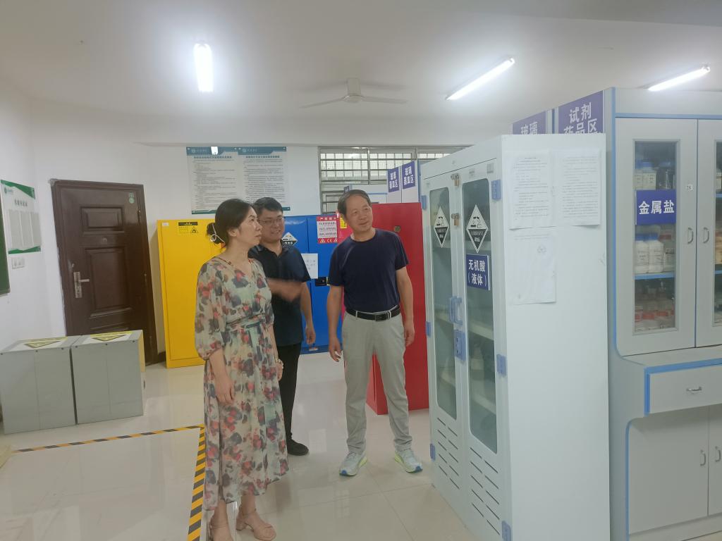 检查以实地走访的形式开展。检查过程中,肖院长一行对各专业实验员进行了亲切交流,询问了学生假期的学习和竞赛情况以及新建实验室的工作进展情况。杨潇剑主任对暑期整改的地方以及化学危废品的转移工作进行了简单的汇报。此次检查,实验室总体情况较好,大多数实验室的环境整洁有序,对个别不规范的地方提出了限期整改的意见和要求。