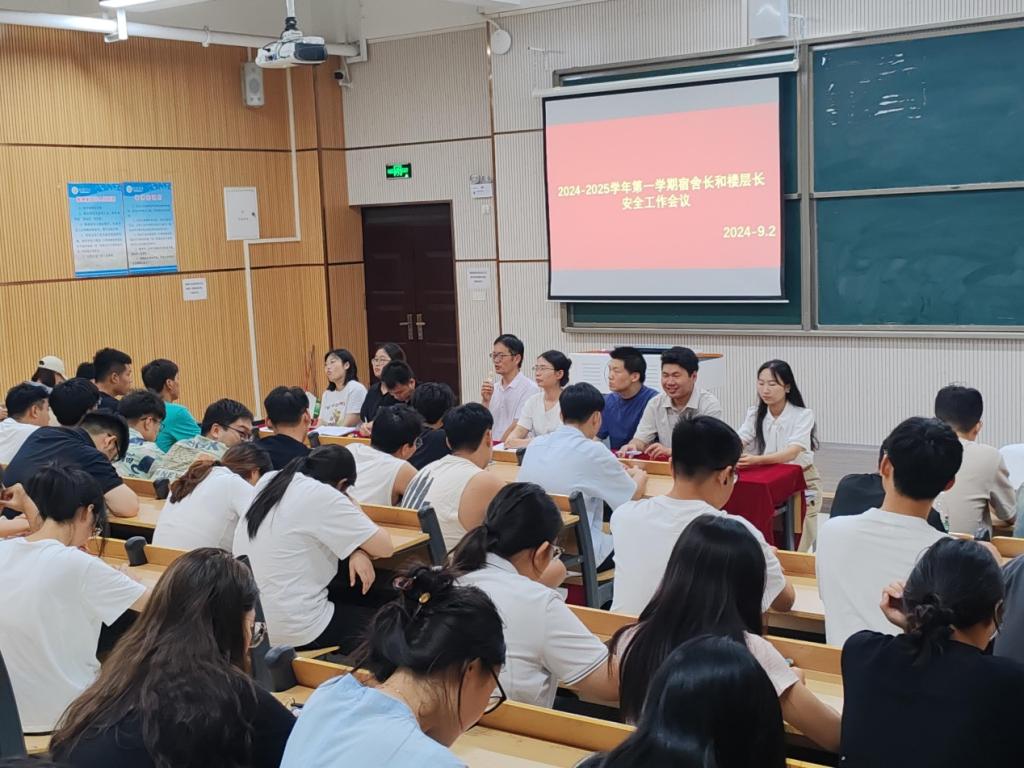 为加强学生宿舍管理,强化同学们在宿舍的责任意识和管理协调能力,营造安全、干净、文明的宿舍环境,9月2日,理工学院在实训中心104召开了2024-2025学年第一学期宿舍长和楼层长安全工作会议。学工秘书杨晓杰、团总支书记杨翔宇、宿舍管理负责人杨康强、新入职辅导员以及全体宿舍长、楼层长参与了本次大会,会议由杨翔宇老师主持。