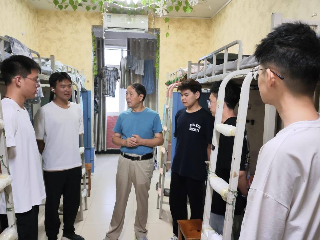 新学期伊始,为了给理工学院的新生们营造良好的学习生活环境,助力学院文明创建,加强宿舍安全管理,9月8日晚,理工学院院长肖生发带领学院学工队伍深入2024级新生宿舍进行走访。