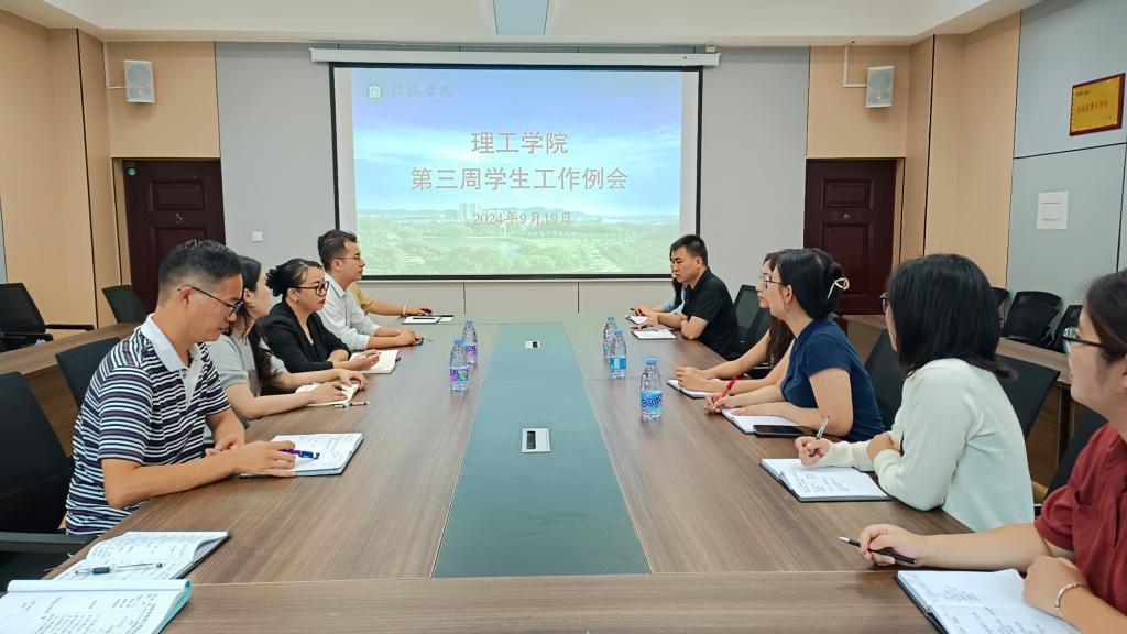 9月19日下午,理工学院学工队伍在理工楼201会议室召开第第三周学生工作例会,理工学院学工秘书杨晓杰及全体辅导员参会。