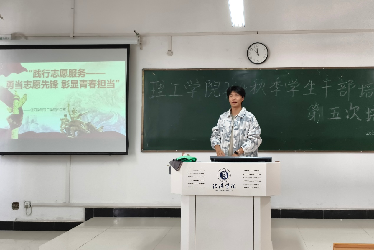 为了提升学生干部对志愿服务的认识,培养他们的奉献精神。10月25日中午,理工学院在理工楼502教室举办了2024-2025学年秋季学生干部培训班第五次培训。理工学院团副张家乐主持此次活动,理工学院学生会干部、24级本科及专升本学生干部参加培训。