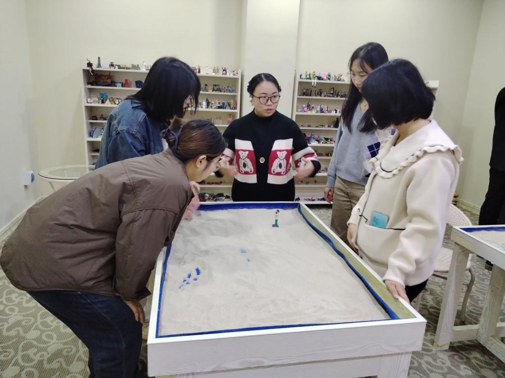 活动伊始,张晶晶老师向全体成员介绍了大学生心理健康辅导中心的工作内容、接待流程及各功能室的特色亮点。她为全体教师深入浅出的讲解了心理危机的产生缘由、应对办法、情绪管理的经验,她鼓励学工队伍老师在应对繁杂的事务时要保持耐心,管好情绪,在工作中积极沉淀自己,扮演好学生引路人的角色。随后她带领全体成员参观了个体咨询室、中控督导室、心理放松室、生物反馈治疗室、团体辅导室、沙盘治疗室、心理测评室、基础情绪宣泄室、运动宣泄室等,讲解了各功能室的特色及仪器使用方法,并现场组织团辅活动,帮助学工队伍教师们更好地认识自己,做出正确的自我评价和自我期望。