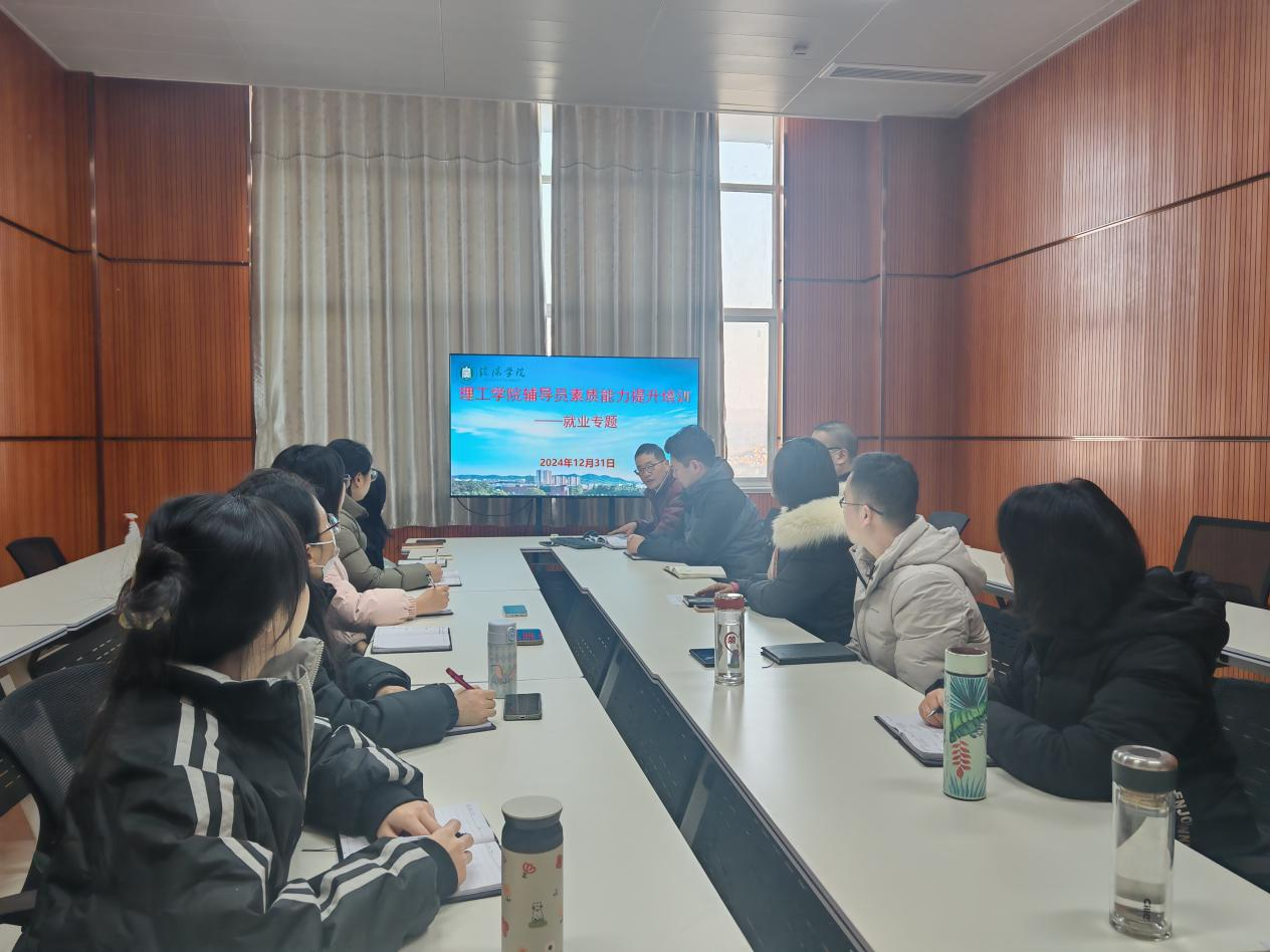 为进一步提升辅导员做好学生生涯教育、规划指导、就业帮扶等工作能力本领,促进我院毕业生高质量充分就业。12月31日上午,理工学院在实训中心分析测试中心实验室召开辅导员素质能力培训第一讲——就业专题,党总支书记赵佳、学工秘书杨晓杰及全体辅导员参会。