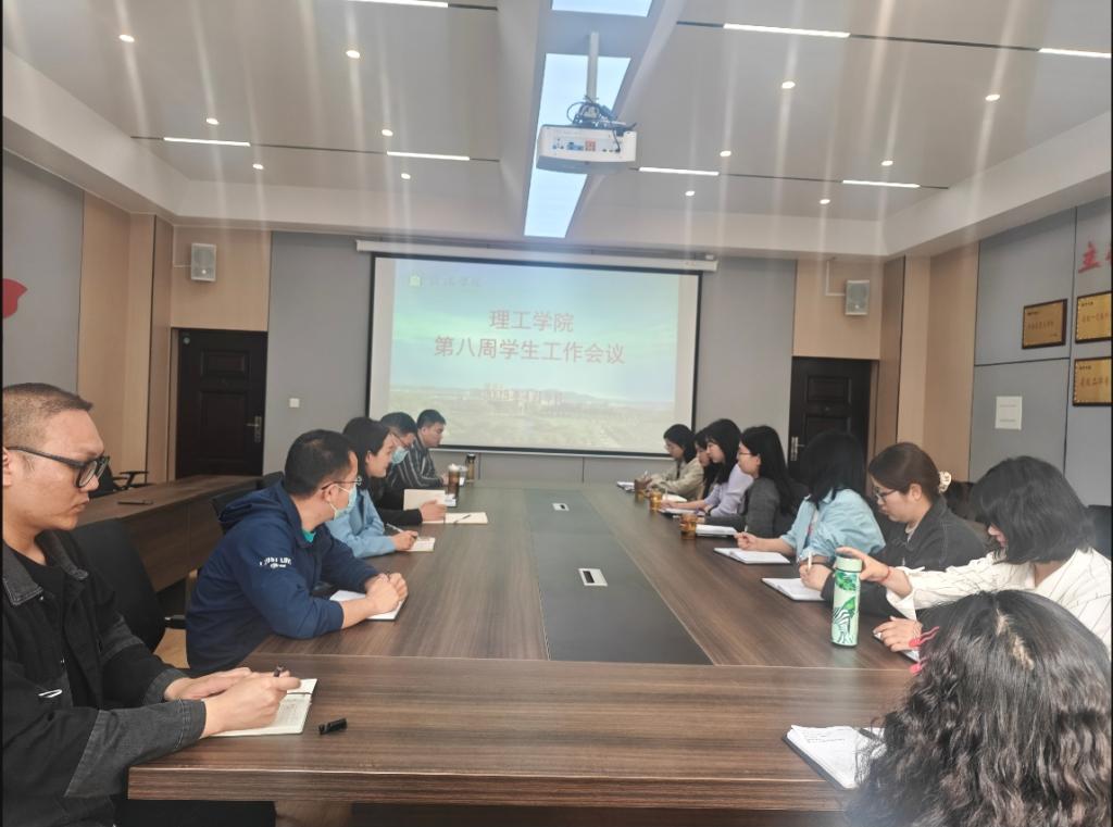 4月8日上午,理工学院在理工楼201会议室召开第八周学生工作例会,党总支书记赵佳、学工秘书杨晓杰出席会议,全体辅导员参加了会议,会议由杨晓杰老师主持。