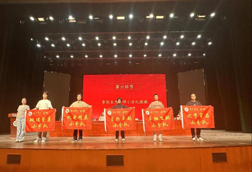 动员会上,学院充分肯定各考研指导老师的辛苦付出,院长肖生发亲自为考研金牌指导、明星指导老师佩戴绶带,以示表彰;教学副院长李晓严为各专业考研团队授旗,一面面旗帜,象征着考研使命与拼搏精神的传承。