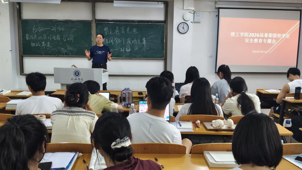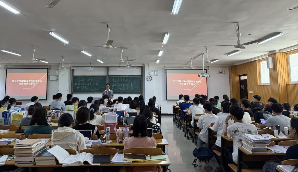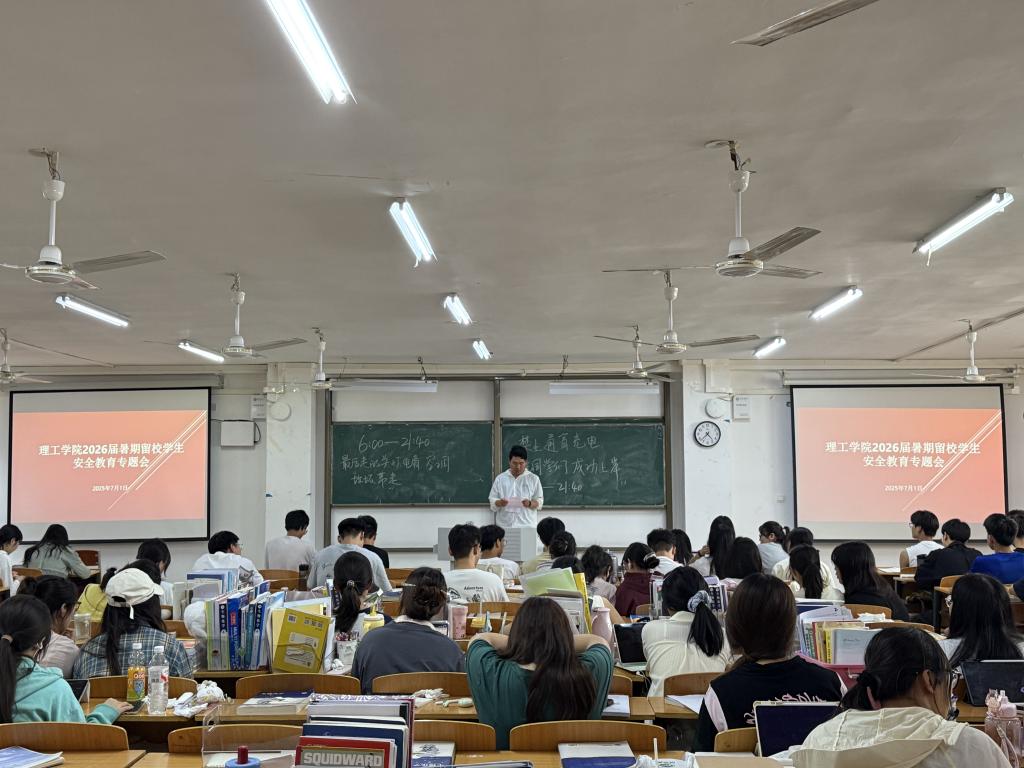 为切实保障暑期留校考研学生的安全,提高学生安全防范意识和自我保护能力,2025年7月1日下午,理工学院在人文楼408开展了一场全方位、多层次的暑期留校考研同学安全教育主题会。学院院长肖生发、党总支书记赵佳、学工秘书杨晓杰、2026届毕业班辅导员及部分暑期留校考研学生参加了本次会议。