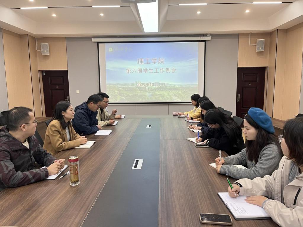 10月13日上午,理工学院于201会议室召开2025年秋季学期第六周学生工作例会。党总支书记赵佳、学工秘书杨晓杰及全体辅导员参会,本次会议由学工秘书杨晓杰主持。