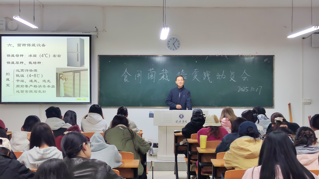 为帮助学生将理论知识与实践操作深度结合,夯实食用菌栽培专业技能,10月17日,2023级生物科学全体学生齐聚理工楼,参加食用菌栽培实践动员会。本次会议邀请卢东升教授、刘安伟老师及徐东亚老师担任主讲,为同学们的实践学习筑牢基础。