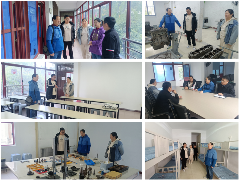 调研考察期间,肖生发院长一行围绕学生实习保障与基地建设,分阶段开展工作。一是夯实出行安全基础:优先落实实习基地具体位置及周边公交路线信息,从交通环节保障学生能顺利抵达,为实习出行筑牢安全前提。二是开展全面实地检查:在宿舍区域,重点考查住宿条件、环境卫生及设备设施安全,细致排查潜在安全风险;在学生餐厅,详细考察环境卫生与菜品种类,切实保障学生日常就餐安全;在大学生自习室,了解开放时间及设备配置情况,全力满足考研学子复习需求。此外,肖生发院长一行人还走进发动机与变速器拆装教室和量具室,仔细询问教学安排,并就强化学生理论与实践结合能力提出指导性建议。
