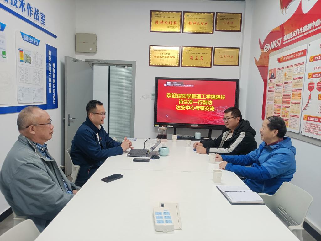 近日,信阳学院理工学院院长肖生发、汽车工程教研室主任王思满及柏文通老师一行3人赴湖北省襄阳市,与国家级汽车检测机构——襄阳达安汽车检测中心有限公司开展“访企拓岗促就业”专项行动。此次活动旨在深化产教融合,拓展车辆工程专业学生的实习就业渠道,同时对接企业需求优化人才培养方案。达安检测中心道路技术经理符大明及企业代表全程参与交流。