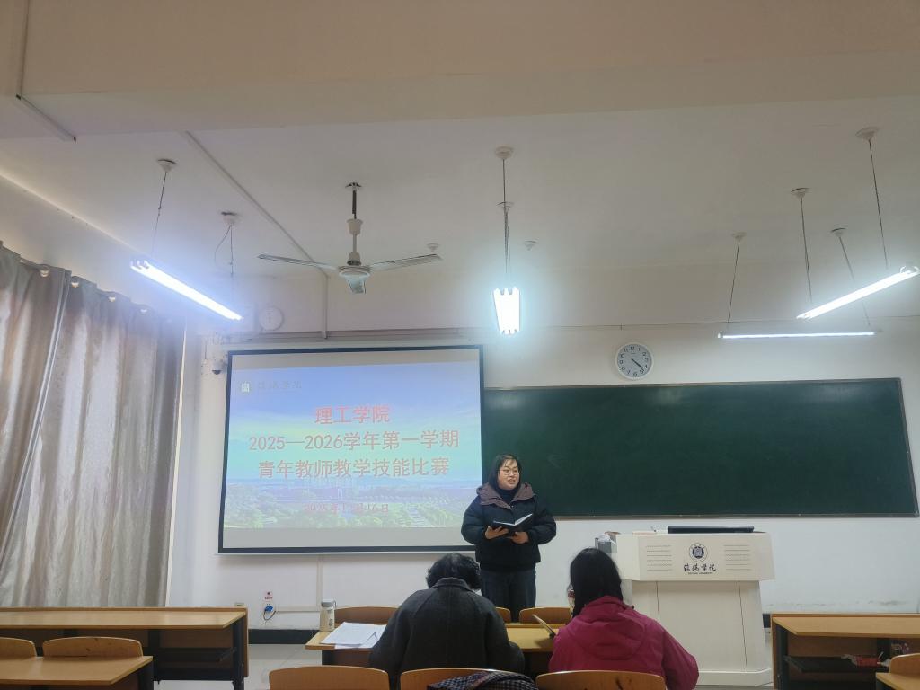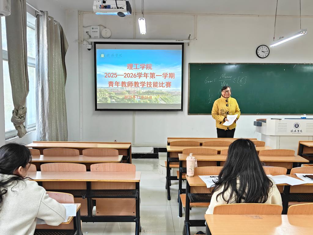 12月16日下午,理工学院2025-2026学年第一学期青年教师教学技能比赛在理工楼402、403、405、407、408教室顺利举行。比赛分五组,由姚素梅教授、王秀丽教授、曹国廷副教授、张小玉副教授、杜来林副教授分别主持。此次比赛旨在推进课堂教学改革与创新,切实提升青年教师教学水平,为青年教师搭建展示与交流的平台。