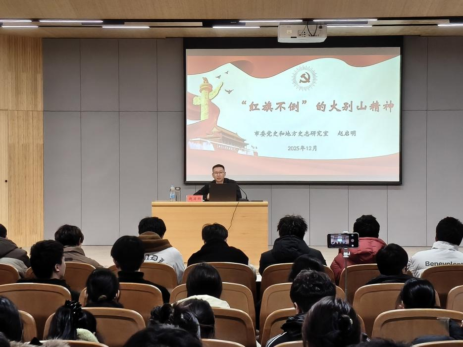 为深入学习贯彻党的二十届四中全会精神,引导广大青年学子从红色基因中汲取奋进力量,12月18日晚,理工学院党总支特邀信阳市委党史和地方史志研究室赵启明作“‘红旗不倒’的大别山精神”专题党课。学院发展对象、入党积极分子、大别山精神传承社全体成员共同聆听了报告。此次党课由学院党总支书记赵佳主持。