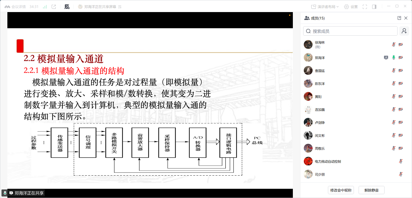 机电教研室教师郑海洋、余梦辉、陈东洋先后进行了线上试讲,选取下学期各自所教授课程的一个章节,以完整一堂课的形式呈现课堂教学。每位老师都利用假期时间做了充分的备课,能充分掌握课程内容并利用各种教学方法进行授课。曹教授、王教授和黄教授等资深老师分别从教学目标达成度、教学方法创新性、课堂节奏把控力、师生互动有效性等维度对几位教师的讲课进行了细致点评。针对点评意见,新教师们认真记录、积极提问,与评审教师深入交流教学设计优化思路,研讨氛围浓厚。