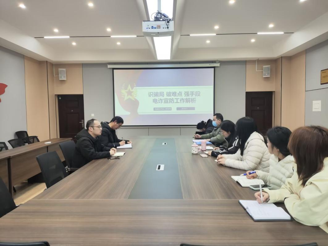 工作开展之初,党总支书记花端阳带领全体辅导员进行了“电诈宣防工作解析”专题集中学习。深入剖析了当前电诈案件的高发形势、学生群体易受骗的心理特征及高发诈骗类型,为后续面向学生的精准宣防统一了思想、明确了重点。