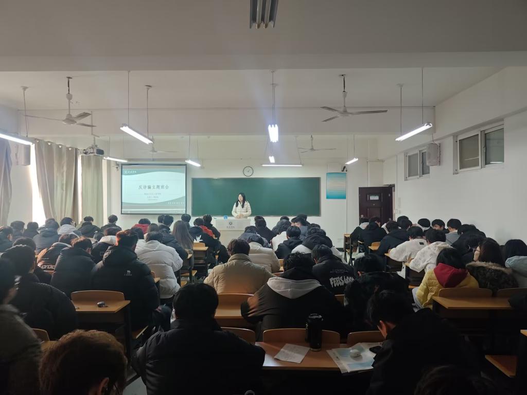 当前,电信网络诈骗犯罪手段不断翻新,已成为威胁师生财产安全的主要风险之一。学院将“开学反诈”作为本学期安全教育的第一课,确保反诈主题班会覆盖全院每一个班级、每一名学生。在主题班会上,辅导员结合专题学习材料,深入剖析了当前针对大学生的虚假贷款、冒充公众人物追星诈骗、网络游戏虚假交易、刷单返利等高发类案,并揭示了“冒充熟人、领导”“冒充客服退款”等骗局的套路,用真实案例教育引导学生破除“我不会被骗”的侥幸心理。