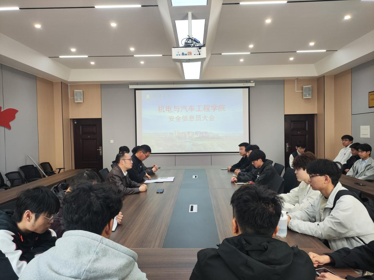 为切实加强学院安全管理工作,健全安全信息传递机制,强化学生安全防范意识,3月31日,机电与汽车工程学院于理工楼201召开安全信息员大会。学院党总支书记花端阳、学工秘书杨晓杰、全体辅导员以及各班安全信息员参加此次会议,会议由杨晓杰主持。