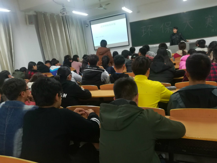 “那一抹绿色消逝殆尽了吗?”11月15日晚6点40分,第一届环保大赛在理工楼504举行。主席助理李贺,副主席王亚杰,教检部部长卢梦雨、周辉,生卫部部长施文倩、何浩以及各班同学代表参加此次活动。