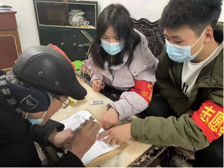靖冠超同学在寒假期间加入了抗击疫情志愿者的队伍。作为志愿者,在郑州市第三、四、五轮全员核酸检测时,提醒村民要保持一米间隔,戴好口罩,做好防护。农村老人有些不会使用智能手机,他就帮助他们进行登记信息,同时维持好现场的秩序。每日在卡点处核查外来入村人员信息,检查健康码、行程码,提醒外出人员做好防护等。
