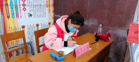 突如其来的疫情一直影响到我们的生活,放假了到了自己为自己的家乡做点贡献的时候了。于是2021级化学本科3班的马玉林同学从1月2日到1月10日8:00到11:00,14:30到17:00,这几天她以县疫情防控指挥部的身份给近期返乡人员做信息调查,给他们打电话询问他们近期的行程以及叮嘱去过高风险地区的人员做核酸检测和居家隔离。从1月12日到18日这几天她以志愿者的身份在街上要求父老乡亲们佩戴口罩并减少人员密集,并在车站设置的卡点要求返乡人员做好信息登记,尽量少出门做好自我防护。从1月19日上午8:00至今她被安排到核酸检测点帮助做核酸人员登记信息,同时对在外地回来并且带信号的人做详细调查。在这期间他们镇在搞环境整治,她上午帮助做核酸下午跟着政府的人员在街上整动停车秩序,以及防止垃圾乱扔。
