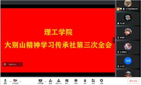 6月5日,理工学院大别山学习传承社通过腾讯会议召开了第三次全会。副社长杨晓杰、副社长马子栋和全体社员参加了此次会议。
