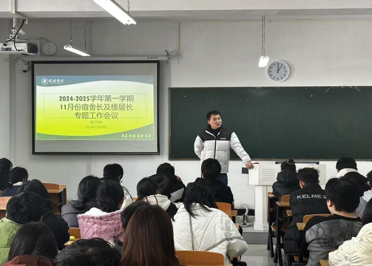 为了提高宿舍卫生环境,增强宿舍为家意识,积极构建整洁卫生风气清雅的宿舍家园,理工学院于2024年11月29日在理工楼402为大家开展宿舍长及楼层长专题工作会议。会议由宿舍管理负责人杨康强老师主持,学生会分管主席及部分学生干部出席本次大会,理工学院宿舍长代表参与此次会议。