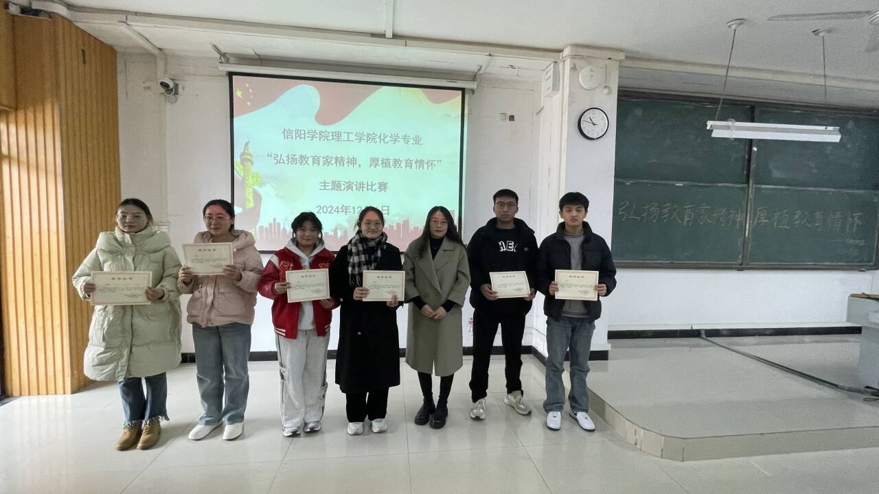 此次演讲比赛是化学专业深入学习贯彻习近平总书记关于教育的重要论述,是以教育家精神为指引,厚植教育情怀的一次生动实践。