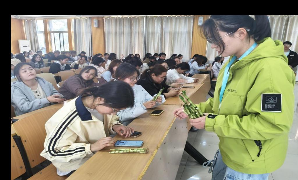 讲座结束后,由相应的工作人员为同学们分发提前准备好的富贵竹材料,此外活动还特别设置了成长记录环节,同学们领取富贵竹后,需定期拍照记录富贵竹的生长过程,并上传至活动QQ群,分享植物成长的喜悦。