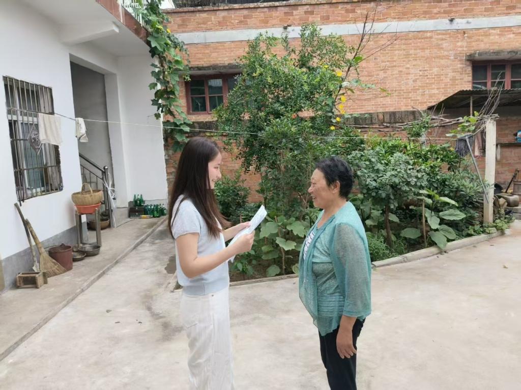 7月20日至25日,团队成员刘鑫甜来到南阳市西峡县丹水镇河头村,走进当地村民家中进行调查研究。她与村民亲切交流,了解他们对生活环境、生态保护的看法和建议,以及对科技产品在农村应用的接受程度,为推动农村绿色发展收集民意。