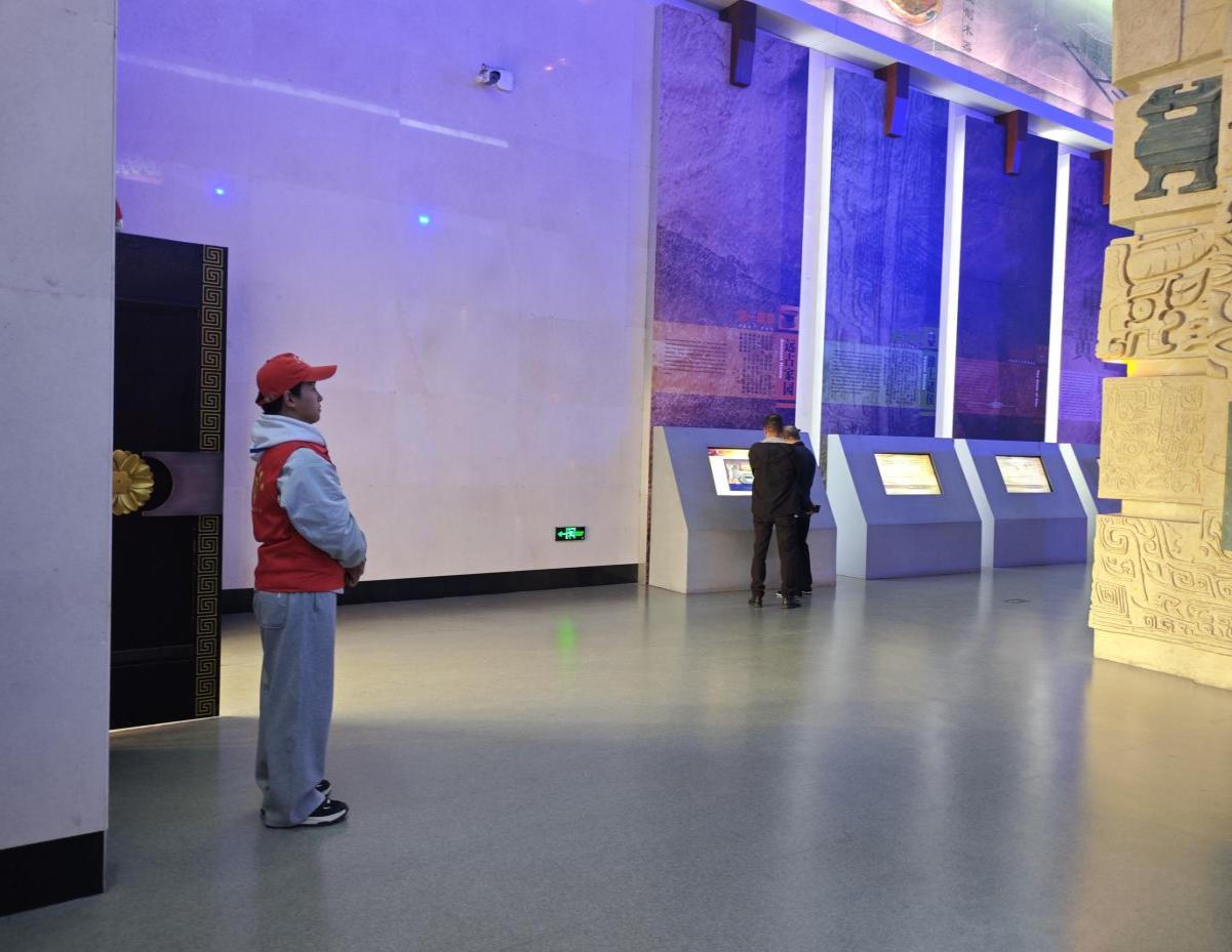 志愿者们提前抵达博物馆,在馆方工作人员的系统培训下,认真学习了博物馆各展厅的主题脉络、重点文物背景知识以及接待服务规范。服务过程中,志愿者们以饱满的热情和严谨的态度,迅速投入到各自岗位。他们不仅在咨询台、展厅入口提供耐心细致的引导服务,有效保障了参观路线的顺畅与秩序,更依托提前掌握的知识储备,为观众生动讲解文物背后的历史故事与文化内涵。参与活动的志愿者代表感慨道:“这次博物馆服务经历,是一次难得的知行合一、回馈社会的实践机会。在将自己所学知识转化为实践的过程中,我们不仅锻炼了沟通能力,更深刻体会到历史文化的生命力和公共教育的重要性。当看到参观者尤其是小朋友们沉浸其中、若有所思的神情时,我们由衷感到所有准备和付出都是值得的。”