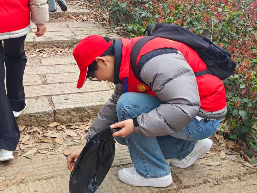 志愿者们身着统一红马甲,手持清洁工具,齐聚贤山脚下。在负责人的带领下,志愿者们迅速投身护绿行动,沿着山路细致搜寻、认真捡拾沿途垃圾,将散落在山间的塑料袋、烟蒂、废纸屑等杂物清理得干干净净。清理过程中,长时间的弯腰、伸手与行走,让志愿者们肌肉酸痛、衣衫被汗水浸透,但大家始终秉持雷锋精神,相互鼓劲、咬牙坚持,无人轻言放弃。山林间,志愿者们忙碌的身影成为一道靓丽的风景线,用执着与坚守守护着贤山的每一寸绿意。经过不懈努力,贤山的山林环境变得更加整洁优美,自然风貌尽显清新。