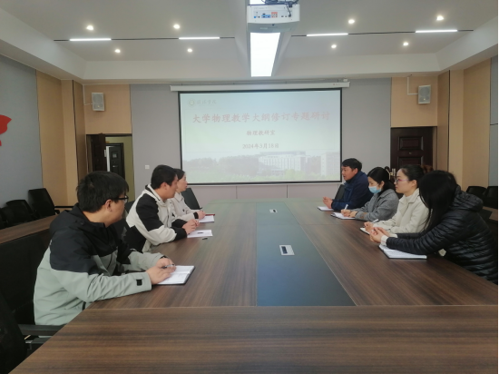 会议首先由董玉静主任带领大家学习了2023年8月由高等教育出版社出版发行的教育部高等学校大学物理课程教学指导委员会新编制的《理工科类大学物理课程教学基本要求》,从专业的角度向大家讲解了内容修改前后的对比和区别。接下来,结合我校目前大学物理课程开设情况,提出针对不同专业的课程大纲修订研讨方案。董主任强调此次修订要坚持“两个保持、优化经典、强化现代、专业衔接、课程思政”的20字修订原则。